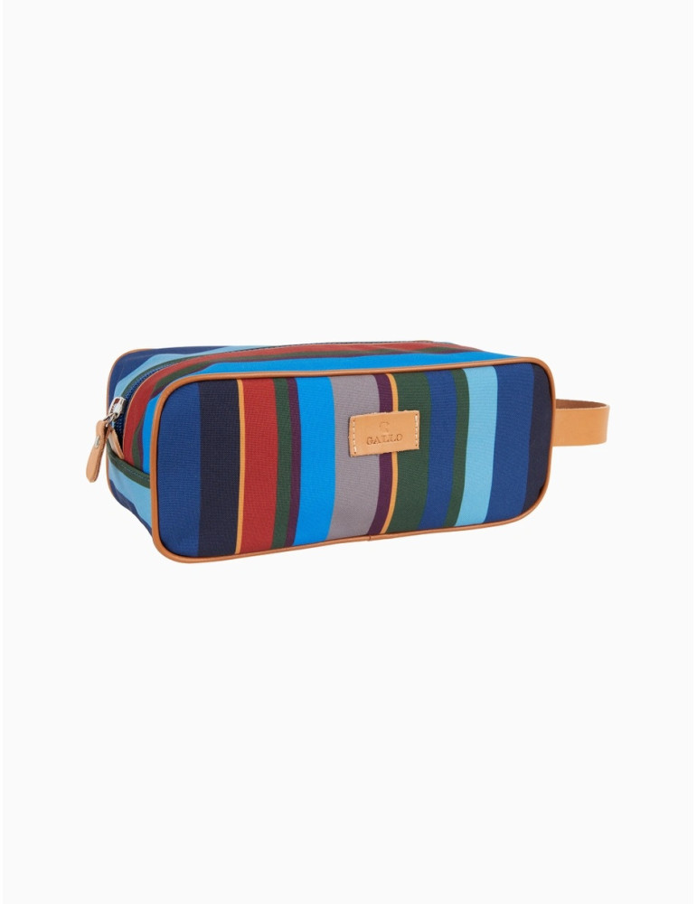 Practical and original unisex beauty case in synthetic fiber, made in Italy with great attention to detail. Gallo's iconic multicolor striped texture, which distinguishes it from the first glance. Fantasy in shades of blue, it can be used as an object holder or beauty-case, to have everything you need always with you.