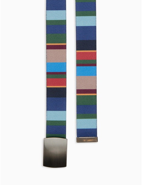 Reversible belt fabric tape multicolor striped with plain back. One size: the belt has a glazed buckle with quick coupling that allows easy removal in order to be able to put an extent based on its size
