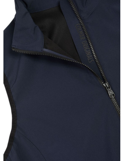 Men's vest made of soft stretch softshell. The bottom and armholes are finished with an elastic ribbon that matches the color of the zips. Particularly the opaque ribbon placed inside the collar with the Colmar Originals logo. Practicality and comfort in movement are given by the regular fit and the basic stretch fabric. Lightweight, it is the perfect garment to accompany you in the spring season.