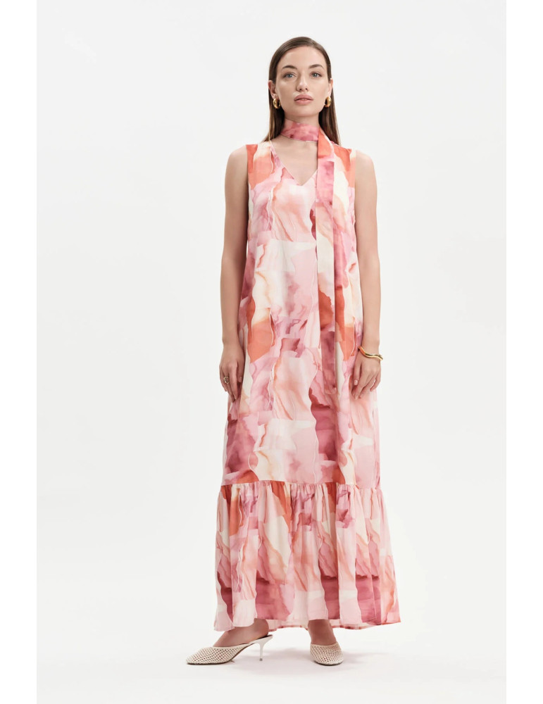 WHITE WISE - Women's V-NECK PATTERNED LONG DRESS WW31533