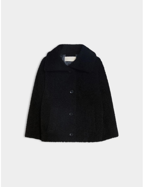 The high collar protects you from the cold, and the bouclé fabric adds a retro touch to your look.