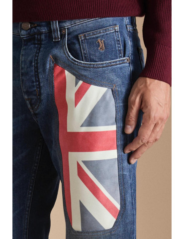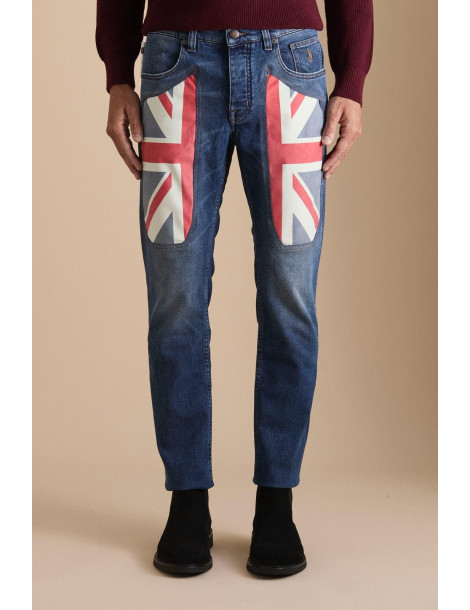Style: Men's jeans, slim fit, five pockets with Alcantara flag panel