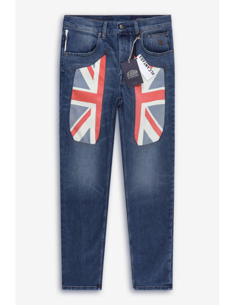 Style: Men's jeans, slim fit, five pockets with Alcantara flag panel