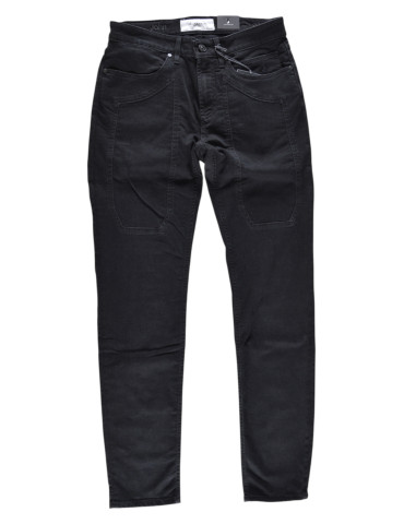 Style: Men's slim-fit five-pocket jeans with flag-print Alcantara panel