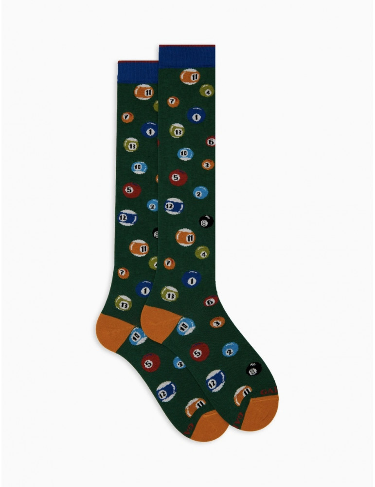 Long men's socks in very light cotton in shades of green, made in Italy. Very soft to the touch, created for those who do not give up a detail of style. The billiard ball pattern makes them cool and fun. Suitable for a formal or sparkling look. The perfect fit Gallo, synonymous with Italian quality since 1927.