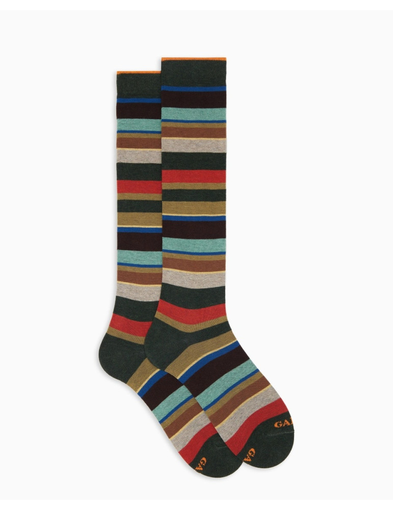 Knee-high stocking st man in stretch cotton, multicolor line of burgundy color - electric blue - dark blue - dark gray - medium gray and standard size corresponding to 40-45 feet.