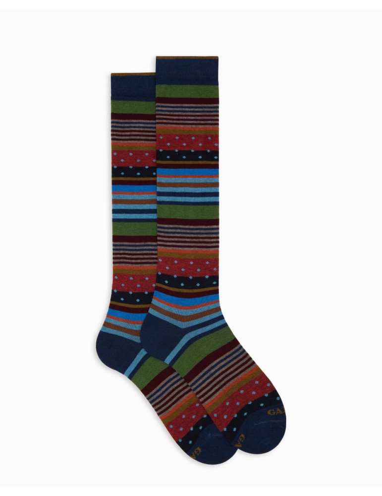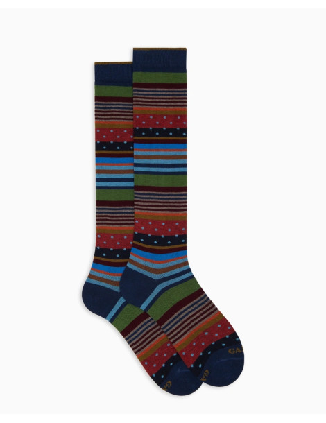 Men's Rooster royal cotton patterned long socks mix stripes and polka dots AP512393 F-W 2024