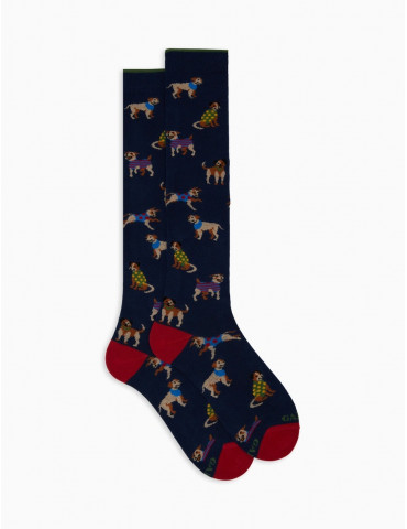Calze Gallo lunghe uomo cotone blu fantasia galli multicolore AP514272