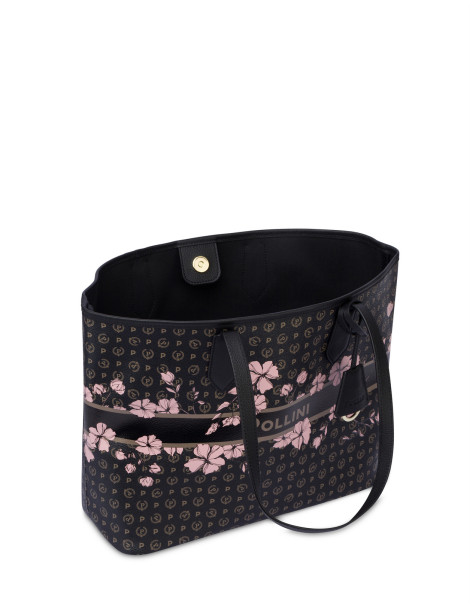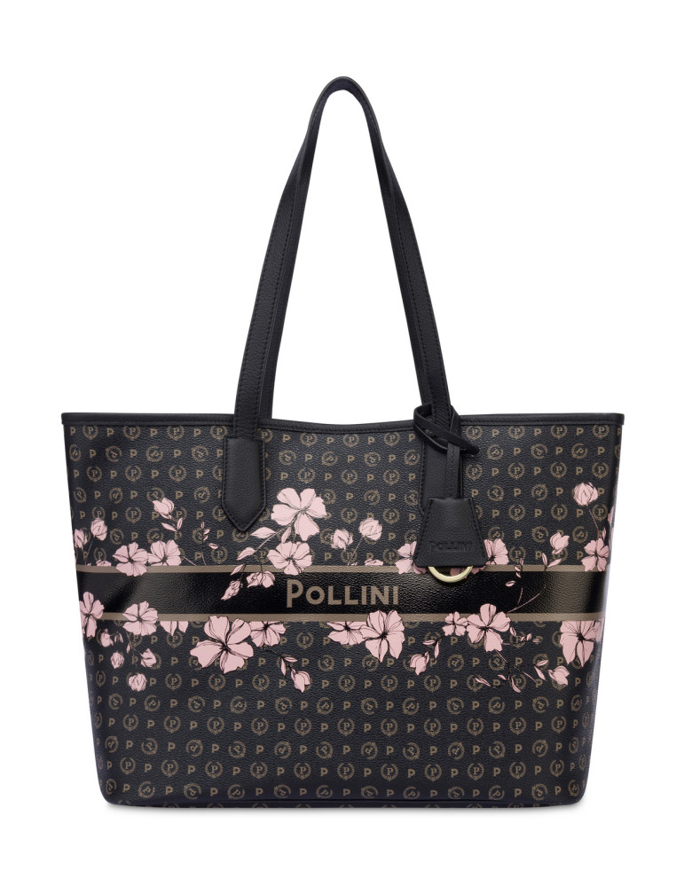 Iconica, capiente, irresistibilmente floreale. La Shopping Bag Heritage Marina Flower di Pollini celebra l’eleganza con l’inconfondibile stampa all over e una cornice floreale che incornicia il logo lettering frontale. Dotata di doppi manici in pelle, chiusura magnetica e pouch interna con zip, unisce praticità e stile in ogni dettaglio. L’interno foderato offre spazio e organizzazione, completato da un portachiavi a clochette amovibile e finiture in galvanica light gold. Una borsa pensata per accompagnarti con charme, ogni giorno.
