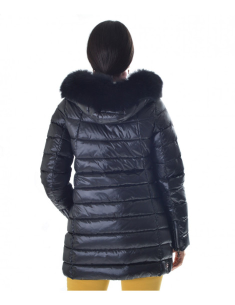 Le linee verticali slanciano la figura, mentre il cappuccio con pelliccia sintetica aggiunge un tocco romantico. Questa giacca imbottita è l'alleato perfetto per chi cerca stile e protezione, con le tasche laterali che completano il design.