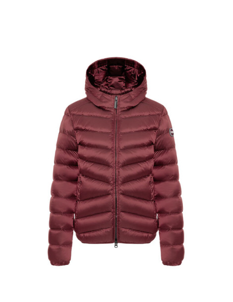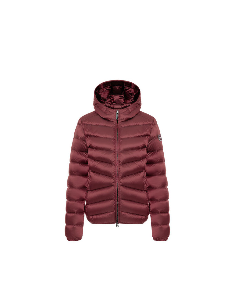 Il finish cangiante e le trapuntature oblique sono i dettagli distintivi di questo piumino con cappuccio e tasche laterali. Il fondo e i polsini elasticizzati tono su tono completano il design con discrezione, assicurando comfort e praticità.